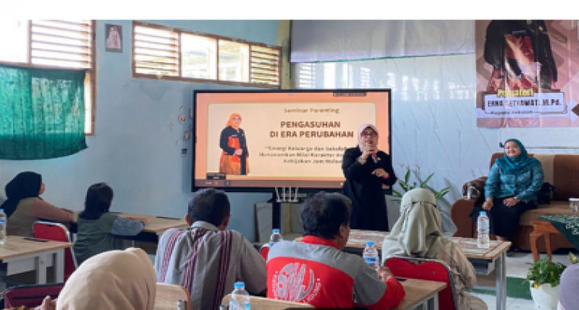 Materi utama parenting disampaikan langsung oleh Kepala SMAN 1 Kedokanbunder, Ibu Erna Setyawati, M.Pd., yang memberikan pemaparan mendalam mengenai pentingnya kolaborasi antara pihak sekolah dan keluarga dalam membentuk karakter anak di tengah tantangan zaman.